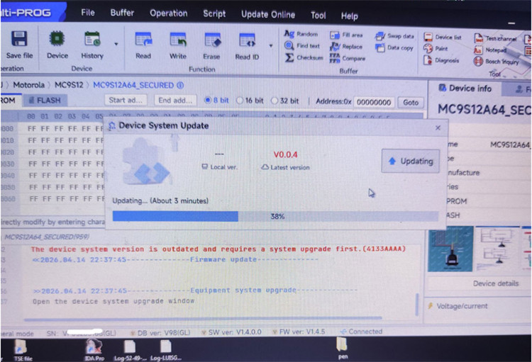 One customer reported that Xhorse Multi Prog always appeared the error “The device system version is outdated and requires a system upgrade first (4133AAAA)” when updating the firmware.