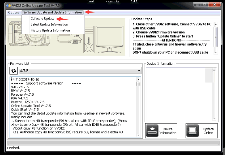 Run VVDI2 Quick Start->Update Online