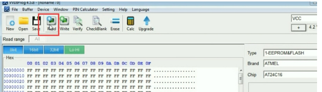 VVDI Prog Programmer can do MCU, ECU, IMMO ect. Today we will show Eeprom and Flash one type of ATMEL AT24C16.