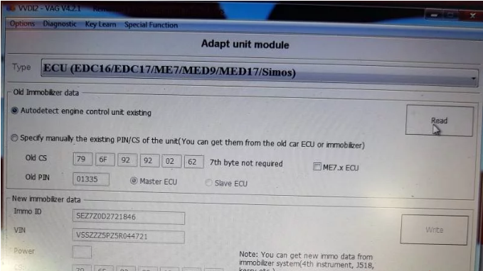 Xhorse VVDI2 VGA ECU adapt doesn’t work with EDC 16U1…Tried on seat Toledo MY05 using VW Touran ECU. Eventually, i disabled immo but i want to adapt it to car…