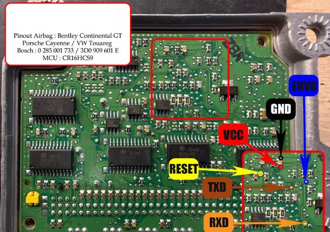 Here shares Xhorse Multi Prog Airbag Pinout for Bentley Continental GT / Porsche Cayenne / VW Touareg with CR16HCS9 MCU.